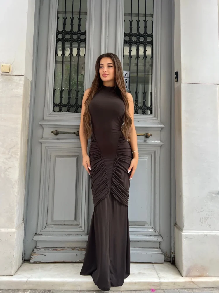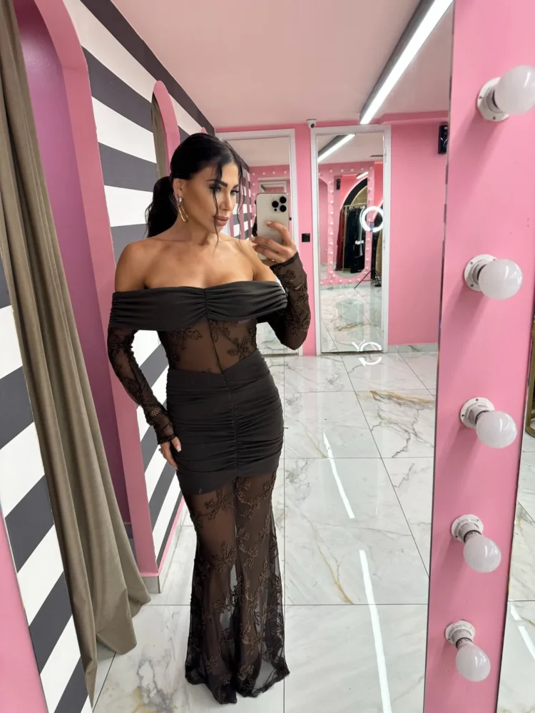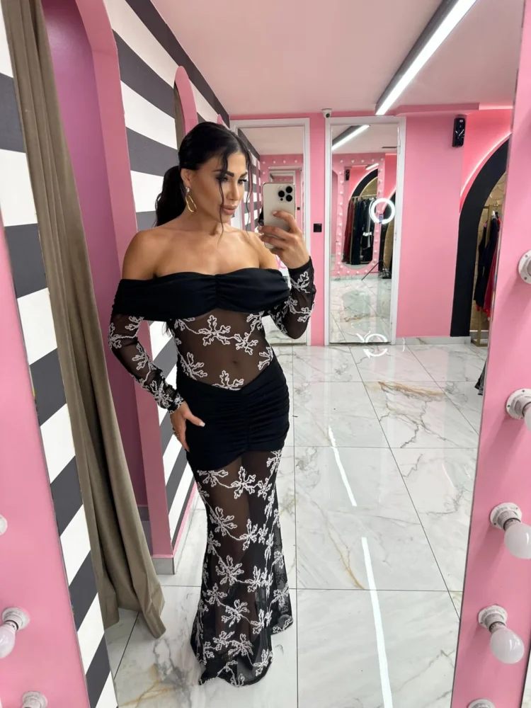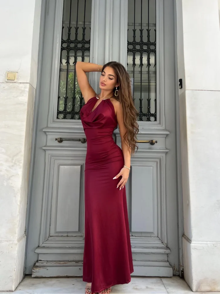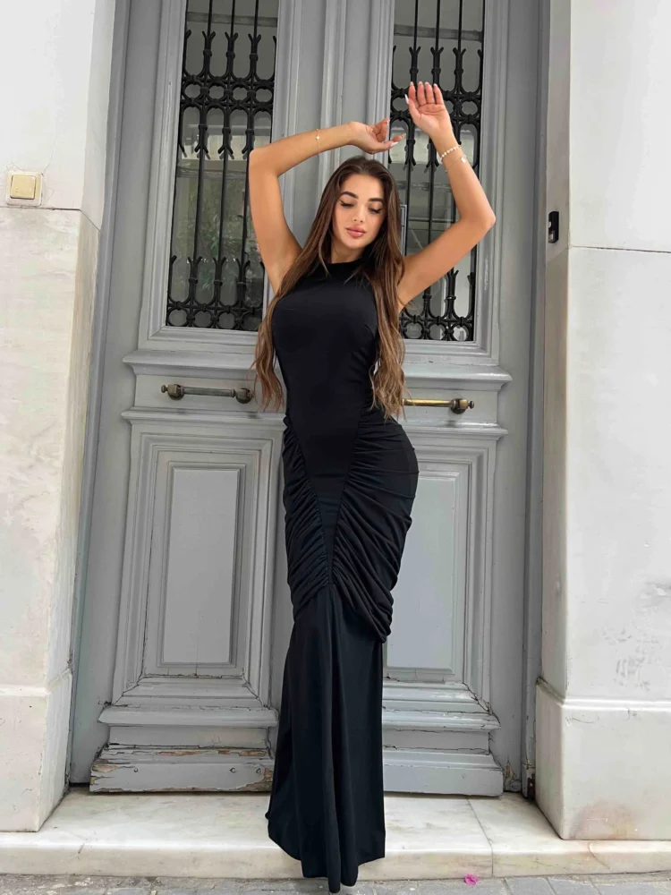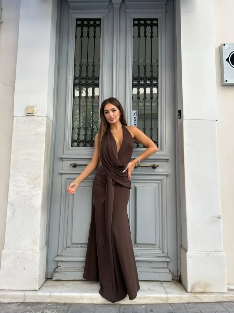 Elegance maxi dress Maxi φόρεμα με χρυσές αγκράφες