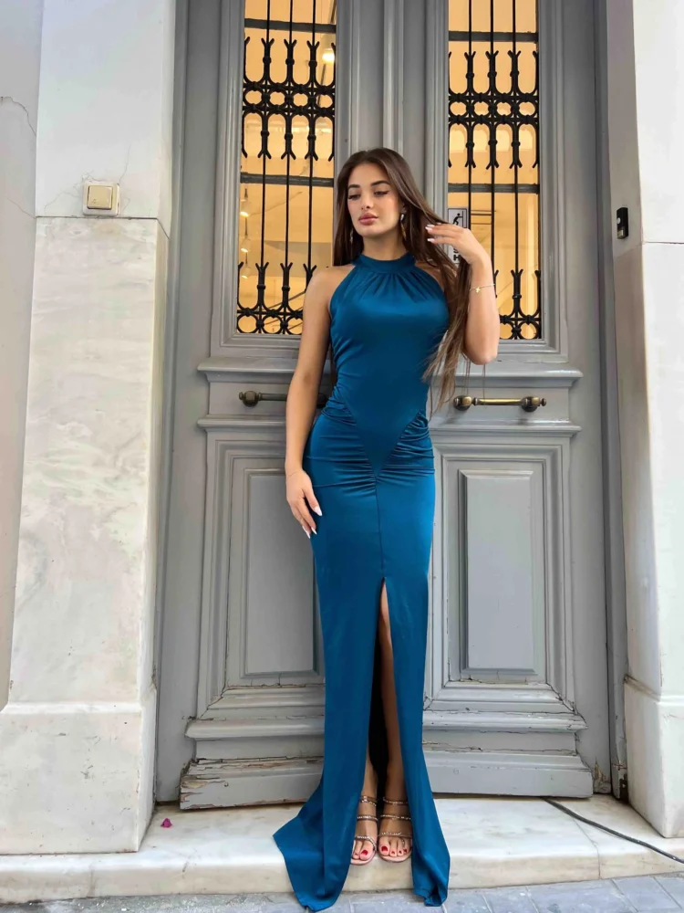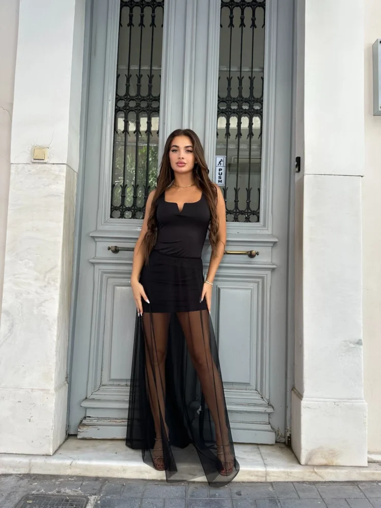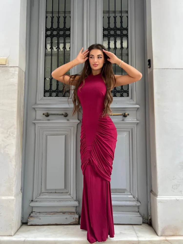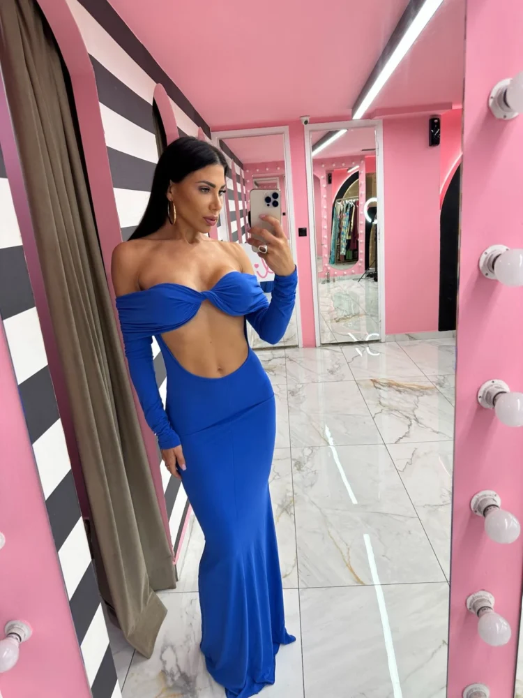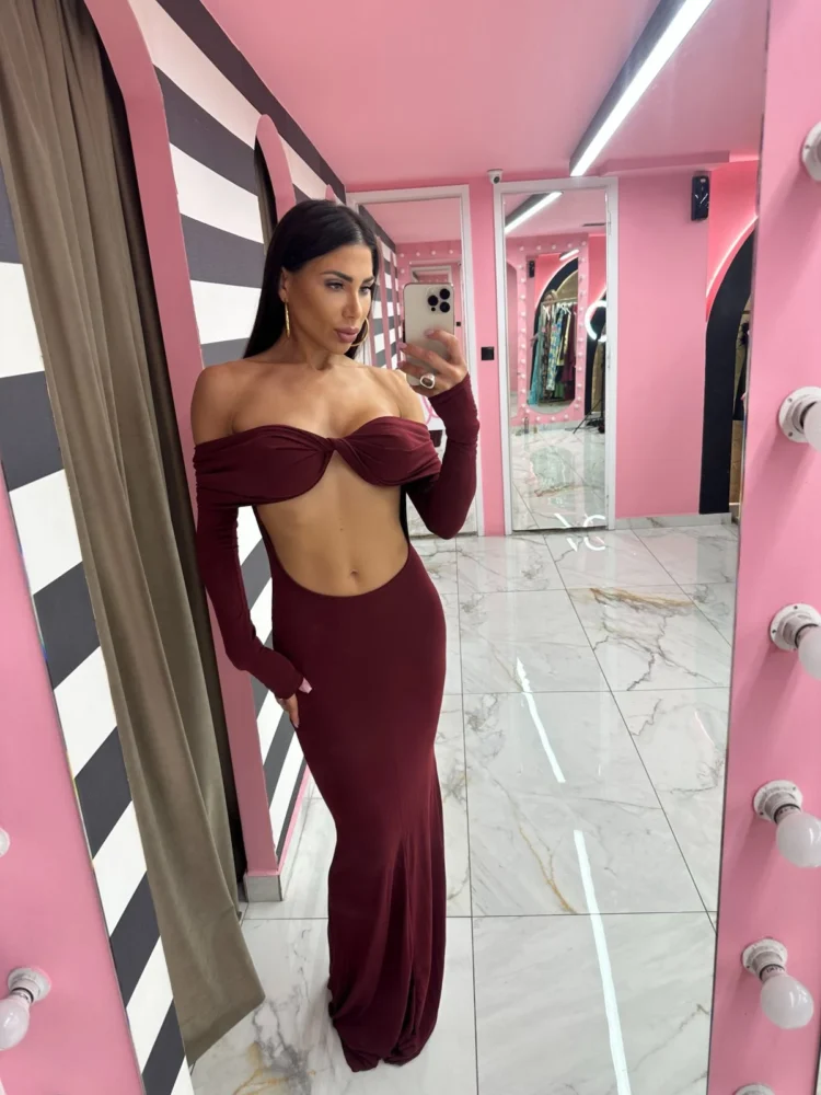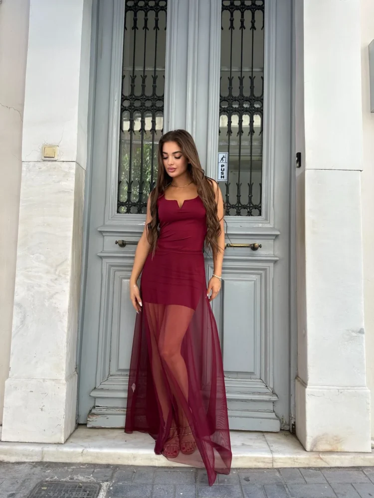 Elegance maxi dress Maxi φόρεμα με χρυσές αγκράφες