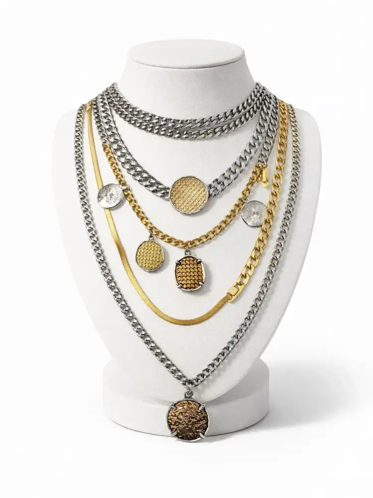 Steel Layered Necklace Set (4 Pieces)