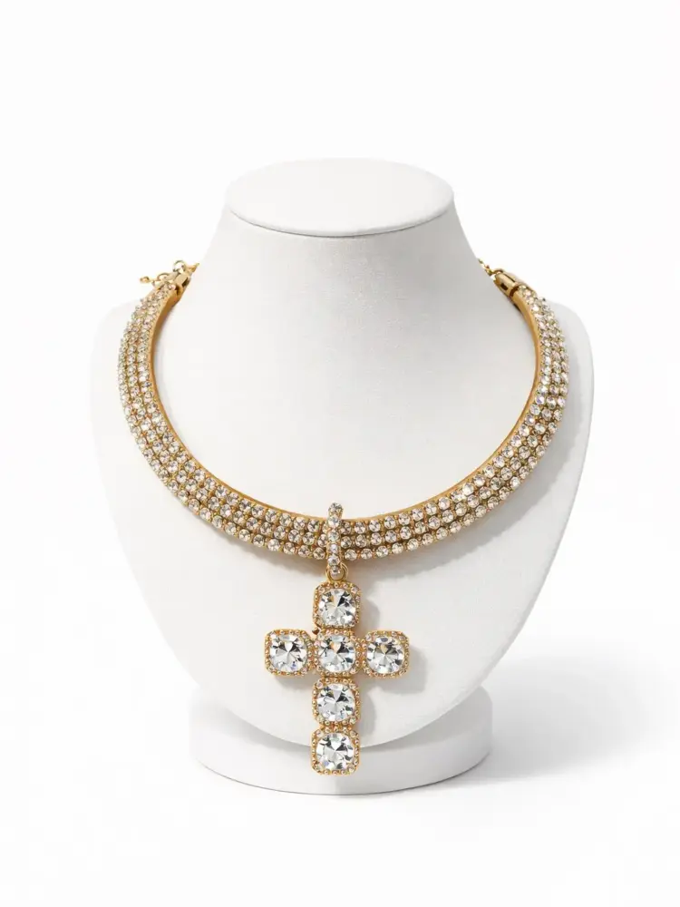 Crystal Cross Steel Necklace