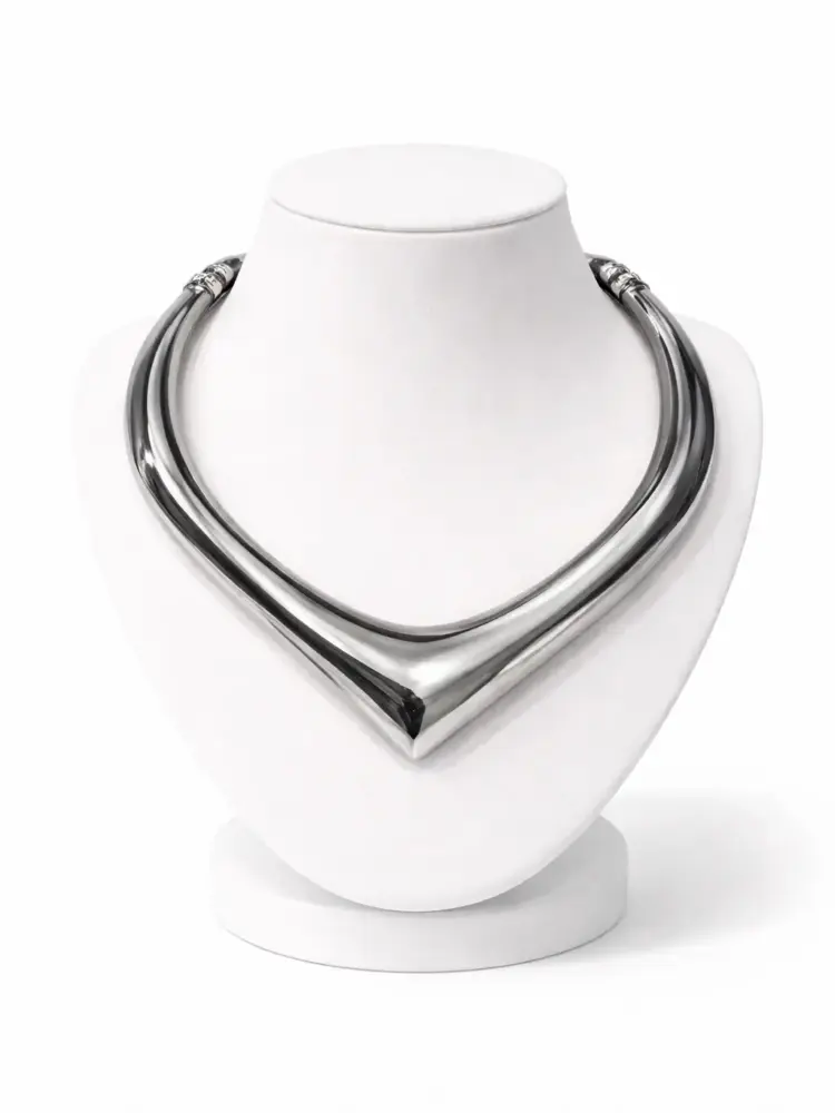 Silver V Statement Steel Necklace
