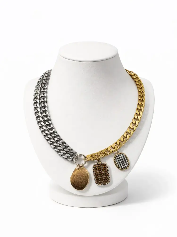 Dual Chain Charm Steel Necklace