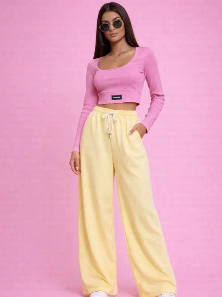 Ροζ τοπ – Κίτρινο παντελόνι