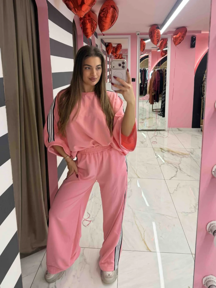 Λευκό τοπ – Ροζ παντελόνι