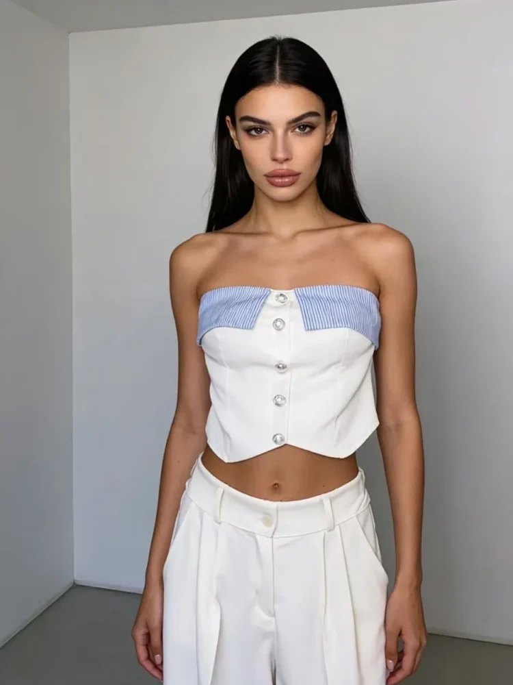 Λευκό τοπ – Κίτρινο παντελόνι