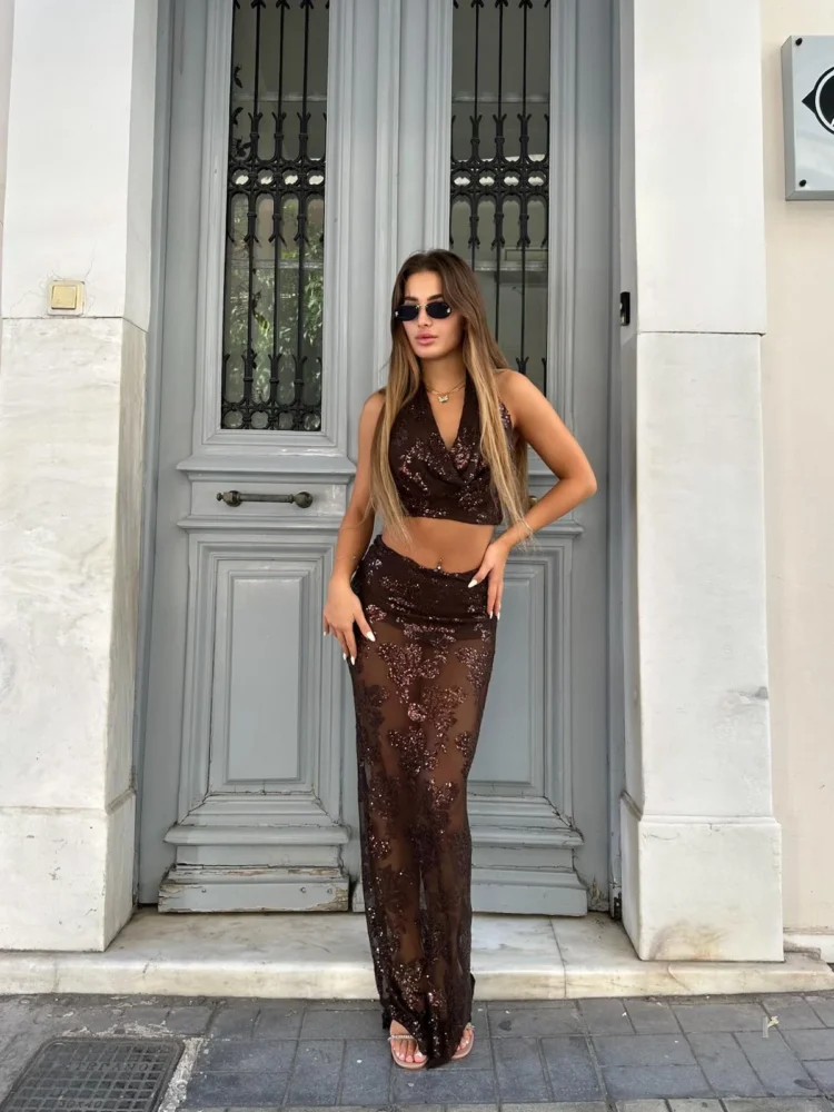 Satin Lace Evening Set