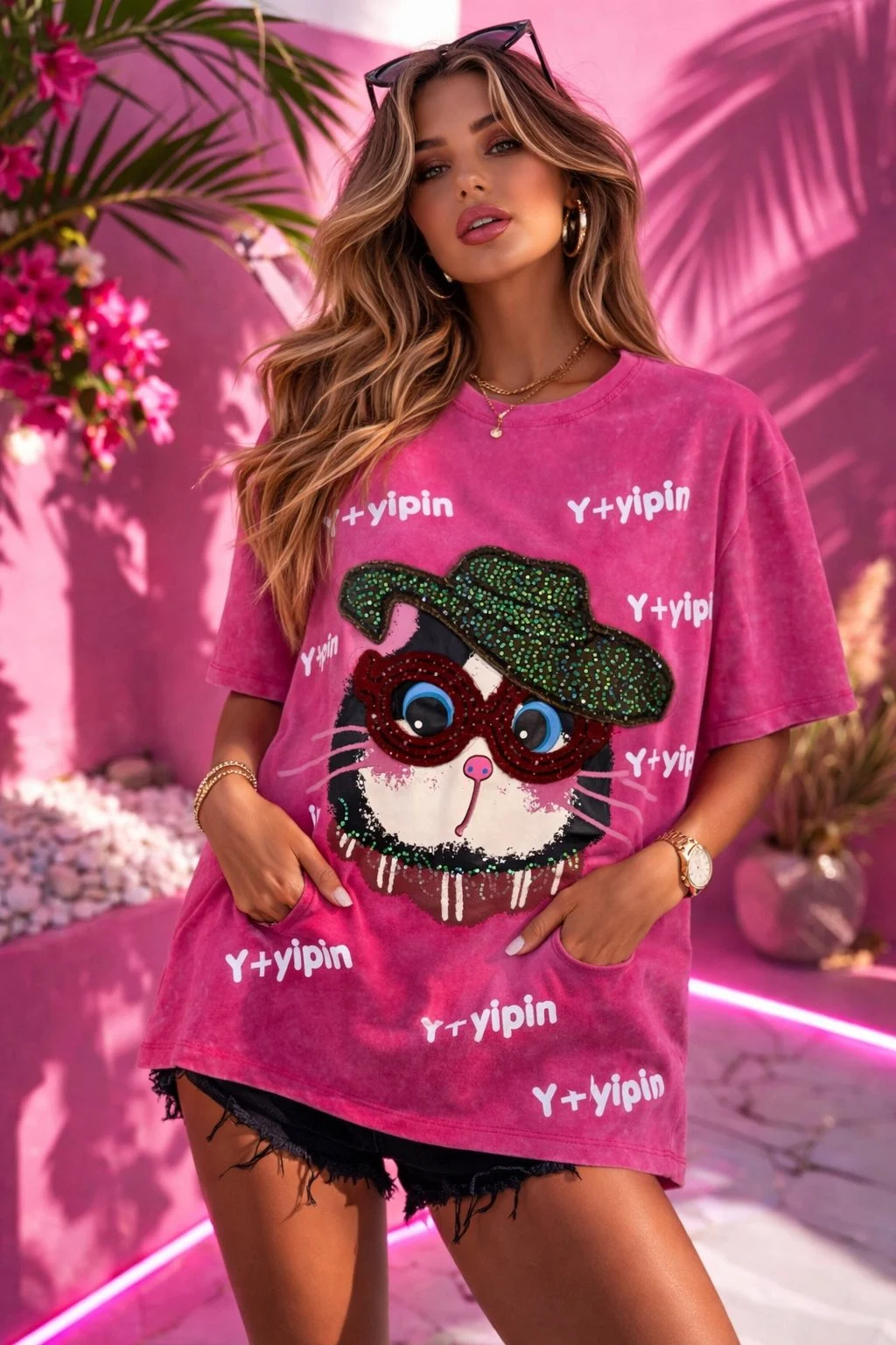 Statement μπλούζα με παιχνιδιάρικο cat print που δίνει fun και girly χαρακτήρα στο outfit σου. Το πετροπλυμένο ύφασμα δημιουργεί ένα ιδιαίτερο vintage look, ενώ η άνετη oversized γραμμή την κάνει ιδανική για καθημερινά outfits με shorts, jeans ή φούστα.