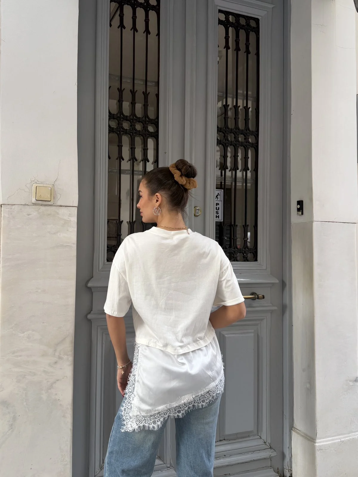 Μοντέρνα μπλούζα με ιδιαίτερο ασύμμετρο τελείωμα και διακριτική δαντέλα στο κάτω μέρος που δίνει ένα θηλυκό και κομψό αποτέλεσμα. Άνετη γραμμή που συνδυάζεται εύκολα με jeans, παντελόνια ή φούστες για καθημερινά αλλά και πιο stylish looks. Ένα κομμάτι που ξεχωρίζει για το design του και αναβαθμίζει κάθε outfit.