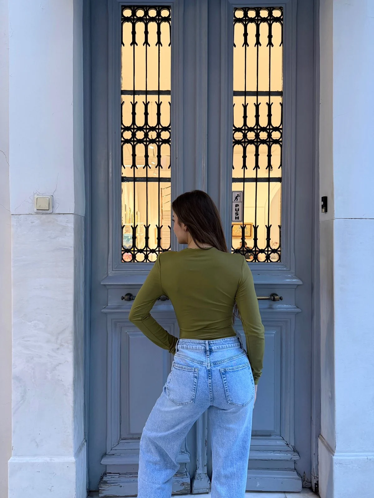 Στυλάτο κορμάκι σε olive απόχρωση που δίνει fashion χαρακτήρα σε κάθε outfit. Το βαθύ V και το twist σχέδιο μπροστά δημιουργούν elegant αποτέλεσμα, ενώ η άνετη εφαρμογή το καθιστά ιδανικό για καθημερινή χρήση.