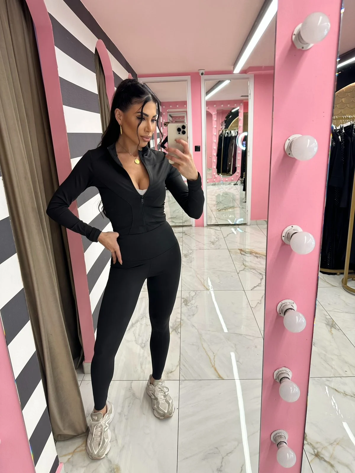 Κλασικό αθλητικό σετ σε μαύρο χρώμα, must-have για κάθε ντουλάπα. Εφαρμοστό, ελαστικό και απόλυτα κολακευτικό, συνδυάζει άνεση και στυλ σε κάθε κίνηση.