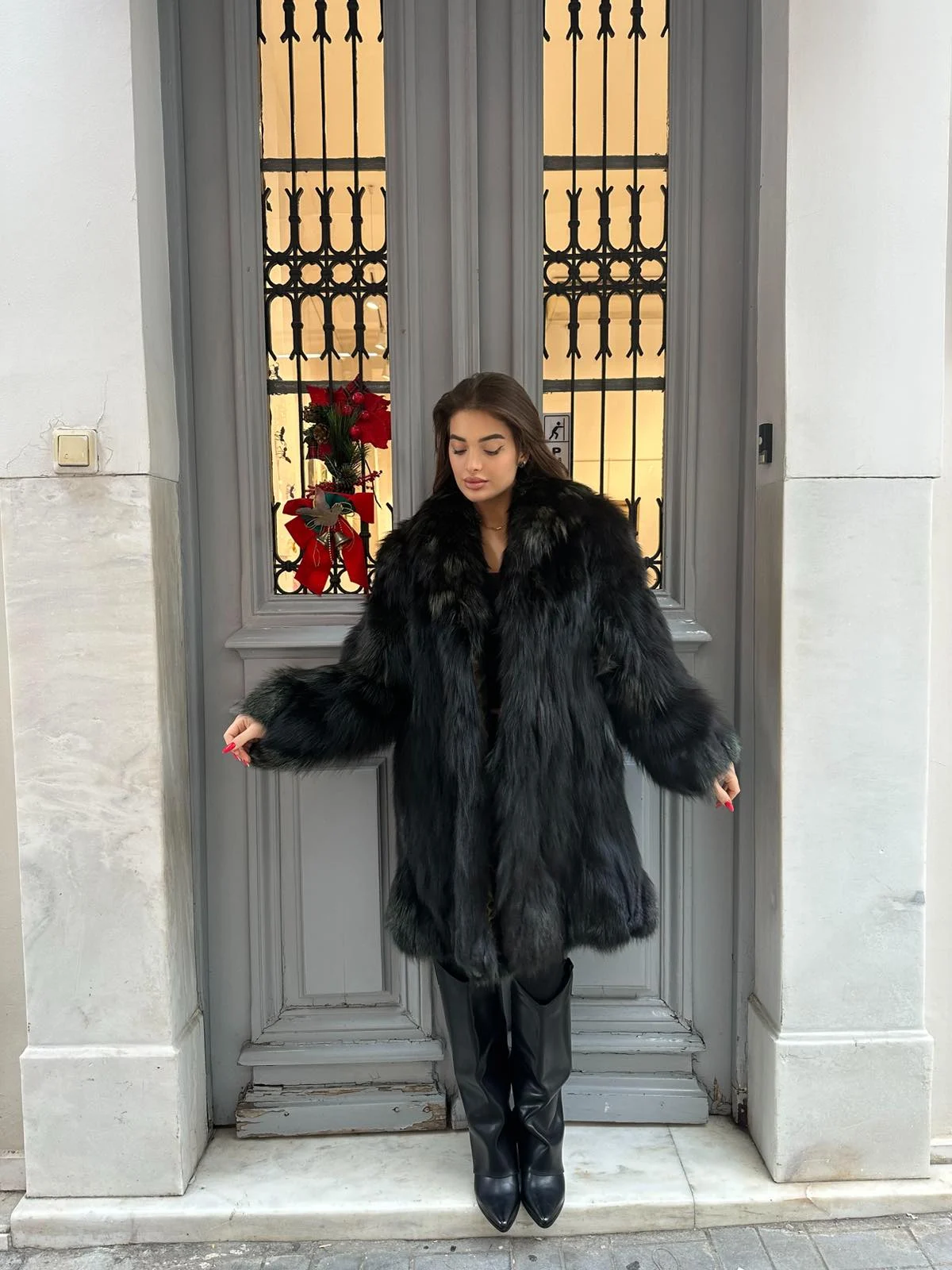 Εντυπωσιακή αληθινή γούνα αλεπούς σε βαθύ μαύρο χρώμα, με πλούσιο όγκο και εξαιρετικά απαλή υφή. Η φυσική λάμψη της γούνας και η άψογη γραμμή δημιουργούν ένα κομμάτι υψηλής αισθητικής που αποπνέει πολυτέλεια και δυναμισμό. Ένα statement πανωφόρι για γυναίκες που θέλουν να ξεχωρίζουν, ιδανικό για βραδινές αλλά και elegant εμφανίσεις.Σε περίπτωση που κάποιο νούμερο δεν είναι άμεσα διαθέσιμο, υπάρχει δυνατότητα παραγγελίας κατόπιν μέτρησης. Η γούνα κατασκευάζεται αποκλειστικά για εσάς και παραδίδεται εντός 10 εργάσιμων ημερών. Σε περίπτωση που κάποιο νούμερο δεν είναι άμεσα διαθέσιμο, υπάρχει δυνατότητα κατασκευής κατόπιν παραγγελίας, προσαρμοσμένης στα μέτρα σας. Ο χρόνος παράδοσης είναι έως 10 εργάσιμες ημέρες.