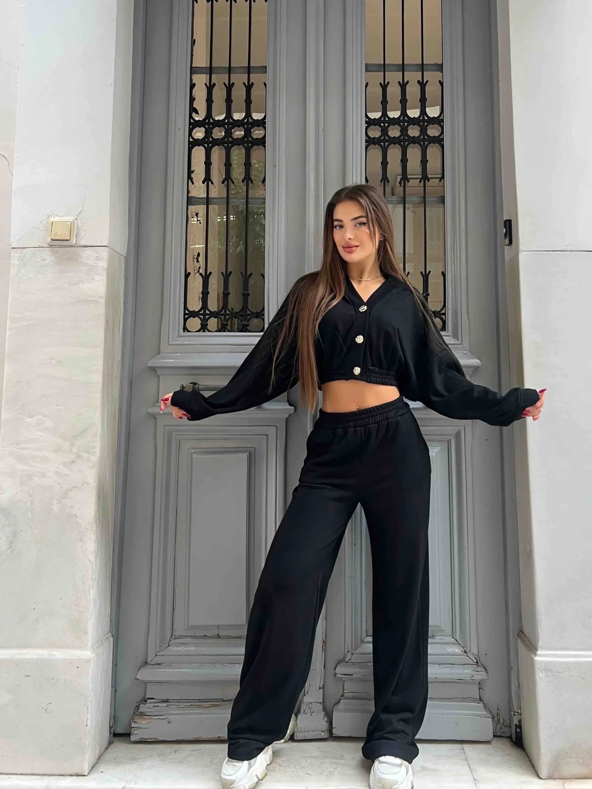 Minimal σετ σε μαύρο χρώμα με κουμπιά και άνετη εφαρμογή.