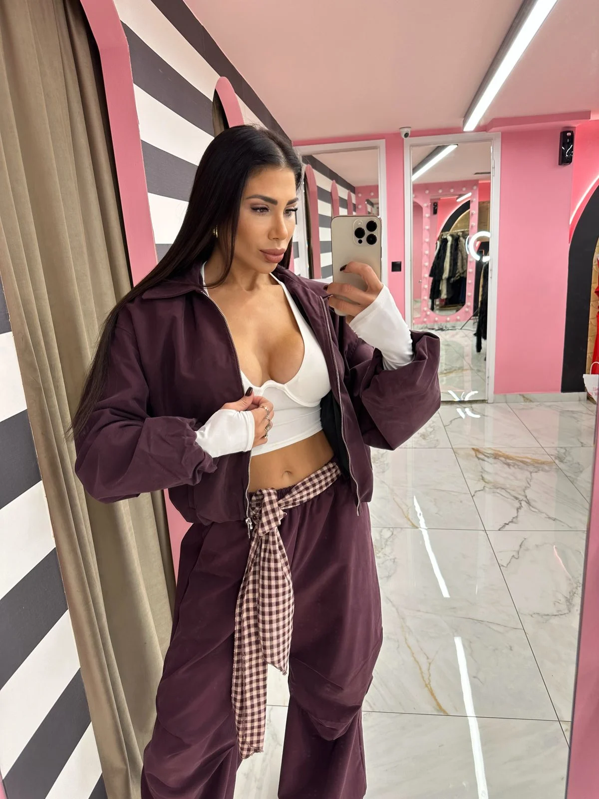Τζάκετ σε βαθύ μπορντό χρώμα με φερμουάρ και άνετη γραμμή. Διακριτικό ύφασμα με ελαστικότητα και cozy υφή, που αγκαλιάζει το σώμα χωρίς να πιέζει. Must-have για φθινοπωρινά looks.