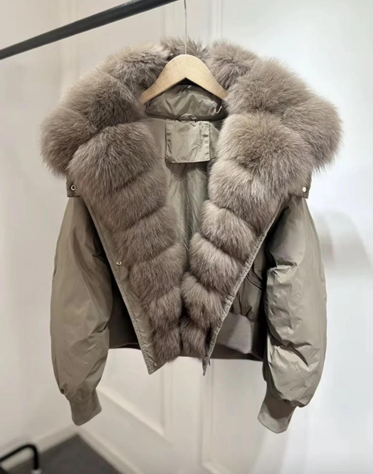 Το Champagne Luxe Jacket αποπνέει πολυτέλεια και εκλεπτυσμένο στυλ. Διαθέτει αληθινή γούνα σε φυσική μπεζ απόχρωση και φαρδιά γραμμή που προσφέρει άνεση και κομψότητα. Το υλικό του είναι ζεστό και μαλακό στην υφή, ιδανικό για τις πιο κρύες μέρες του χειμώνα. Ένα εντυπωσιακό μπουφάν που χαρίζει θηλυκότητα και classy εμφάνιση σε κάθε look.