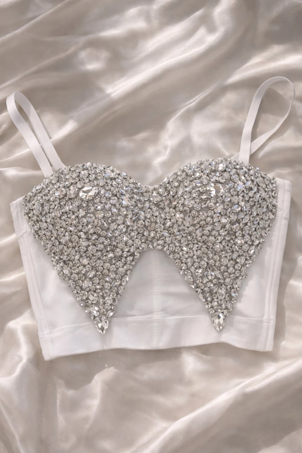 Εντυπωσιακός λευκός κορσές με λαμπερές πέτρες που χαρίζουν απόλυτο glam και luxury αποτέλεσμα 💎 Διαθέτει ενίσχυση στο στήθος για σταθερό κράτημα και αναδεικνύει τέλεια το μπούστο και τη μέση. Το φωτεινό του χρώμα σε συνδυασμό με τα strass το κάνουν ιδανικό για βραδινές εμφανίσεις, events και all eyes on you outfits.