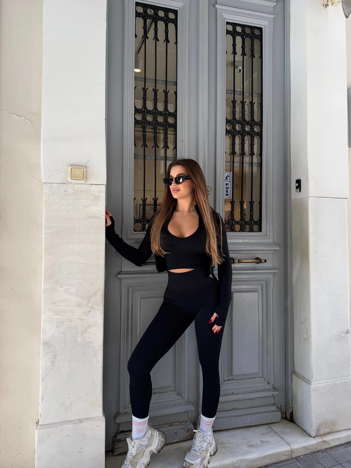 Αποτελείται από top και ψηλόμεσο κολάν, ιδανικό για all day εμφανίσεις από πρωί μέχρι βράδυ.