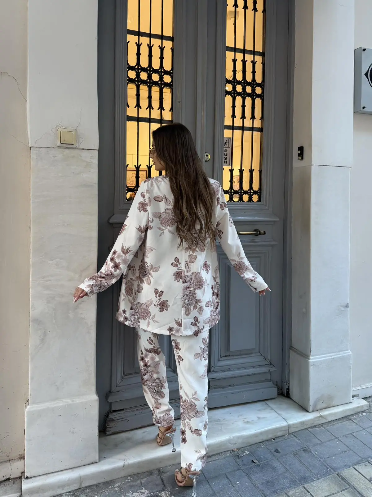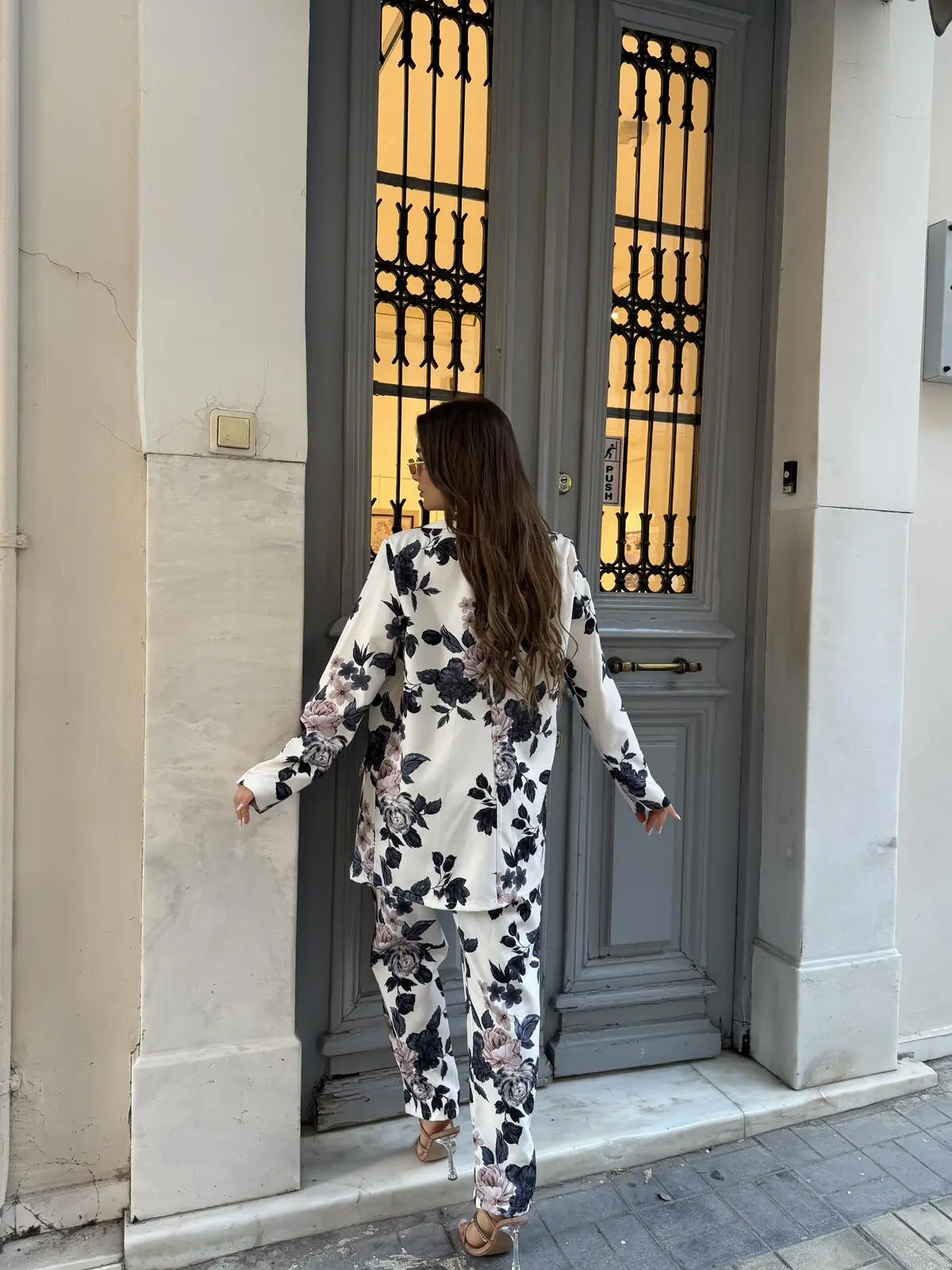 Κομψό κοστούμι με διαχρονικό floral σχέδιο που δίνει ρομαντικό και ταυτόχρονα μοντέρνο χαρακτήρα στο look. Το σακάκι έχει χαλαρή εφαρμογή για άνεση και στυλ, ενώ το παντελόνι σε ίσια γραμμή δημιουργεί μια elegant και θηλυκή εμφάνιση. Ιδανικό για καθημερινές αλλά και πιο ιδιαίτερες εμφανίσεις, συνδυάζεται εύκολα με τοπ ή κορμάκι για ένα ολοκληρωμένο outfit.