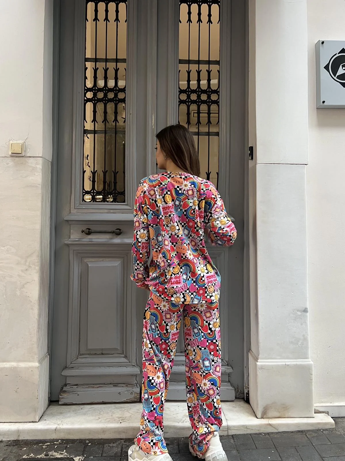 Πολύχρωμη πιτζάμα με fun prints και θετικά μηνύματα για ανεβασμένη διάθεση.