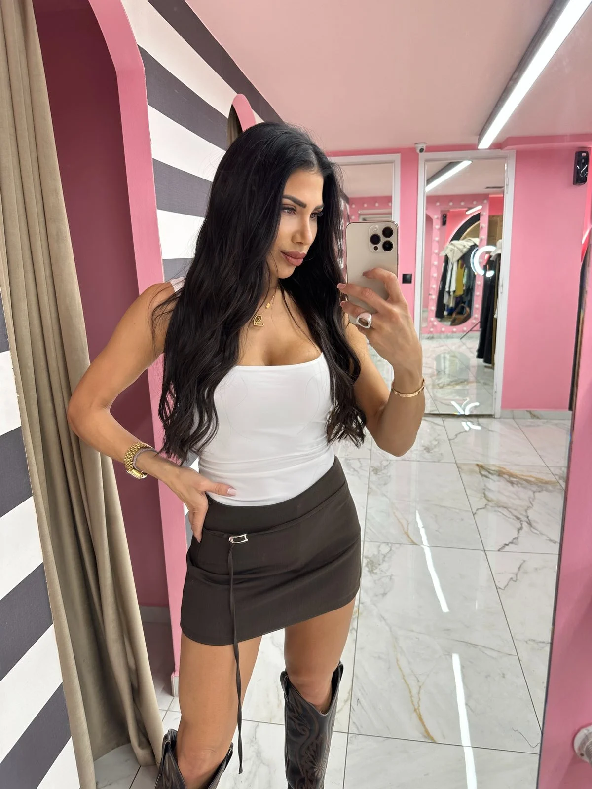 Η Cocoa Belt Skirt έρχεται σε μια ζεστή καφέ απόχρωση που ταιριάζει με όλα. Με εσωτερικό σορτς και άνετη εφαρμογή, προσφέρει πρακτικότητα και στιλ. Η λεπτομέρεια με τη ζώνη στο πλάι την κάνει ιδιαίτερη και πολύ μοντέρνα.