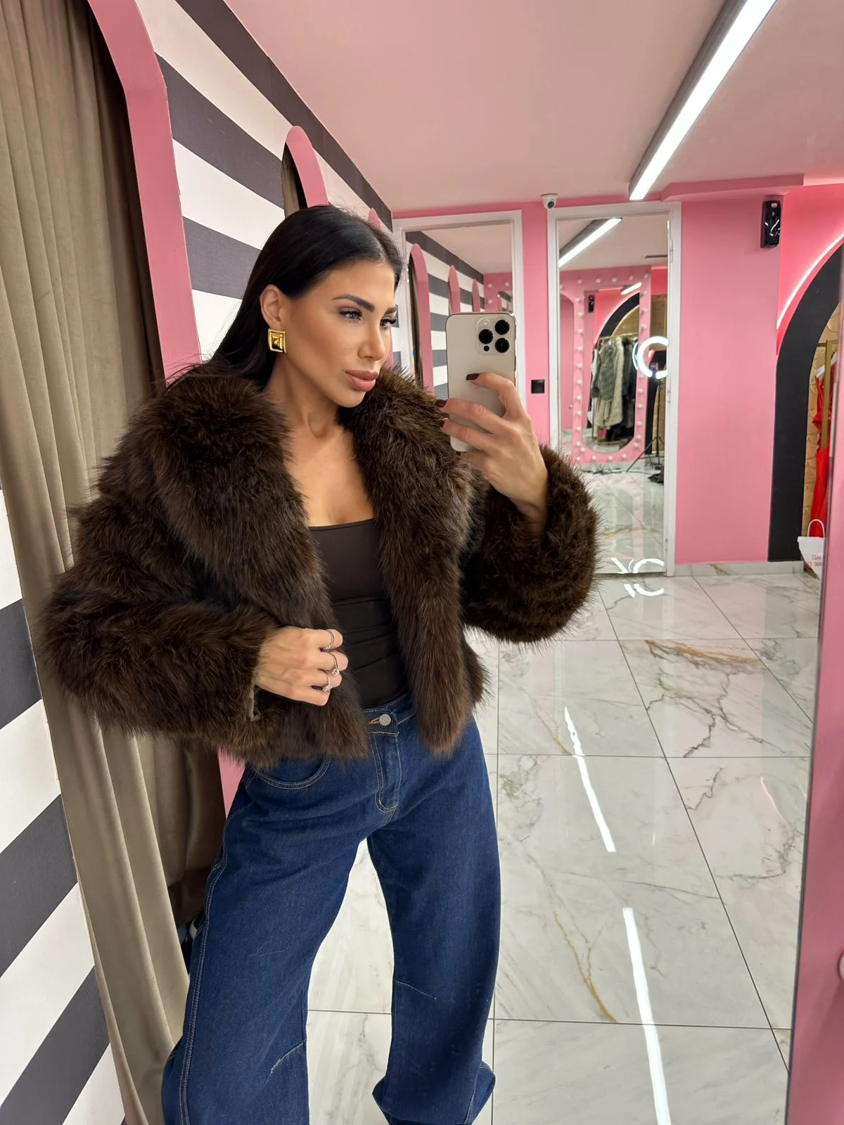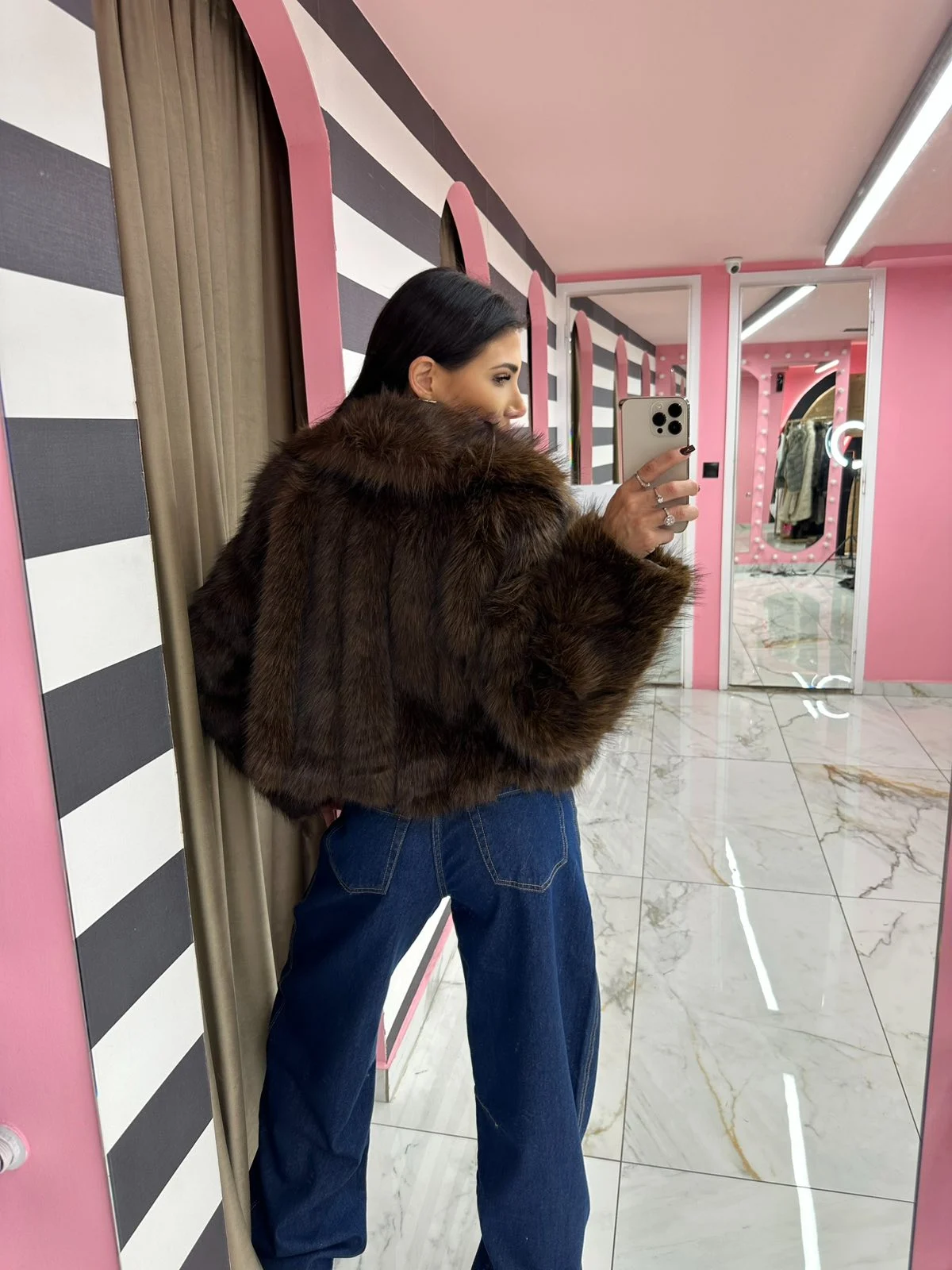 Κοντή οικολογική γούνα σε βαθύ σοκολατί χρώμα με πλούσια, αφράτη υφή. Ζεστή, πολυτελής και εξαιρετικά απαλή, δίνει chic αποτέλεσμα σε κάθε outfit — από πρωινό μέχρι βραδινό look.