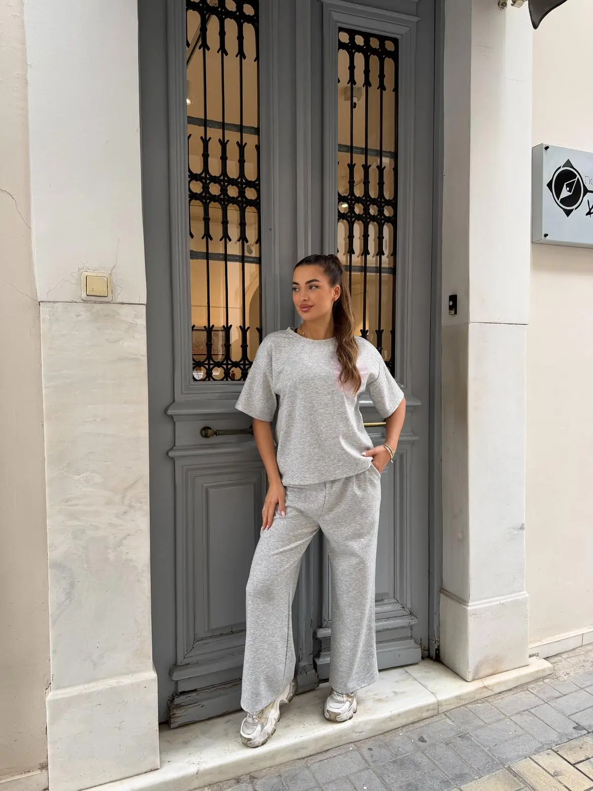 Άνετο και stylish καθημερινό σετ με oversized μπλούζα και παντελόνα, ιδανικό για όλες τις ώρες της ημέρας. Ξεχωρίζει με τη λαμπερή τσέπη στο μπροστινό μέρος που δίνει μία πιο ιδιαίτερη πινελιά στο look. Έχει χαλαρή εφαρμογή, είναι πολύ εύκολο στο styling και φοριέται άνετα από το πρωί μέχρι το βράδυ.