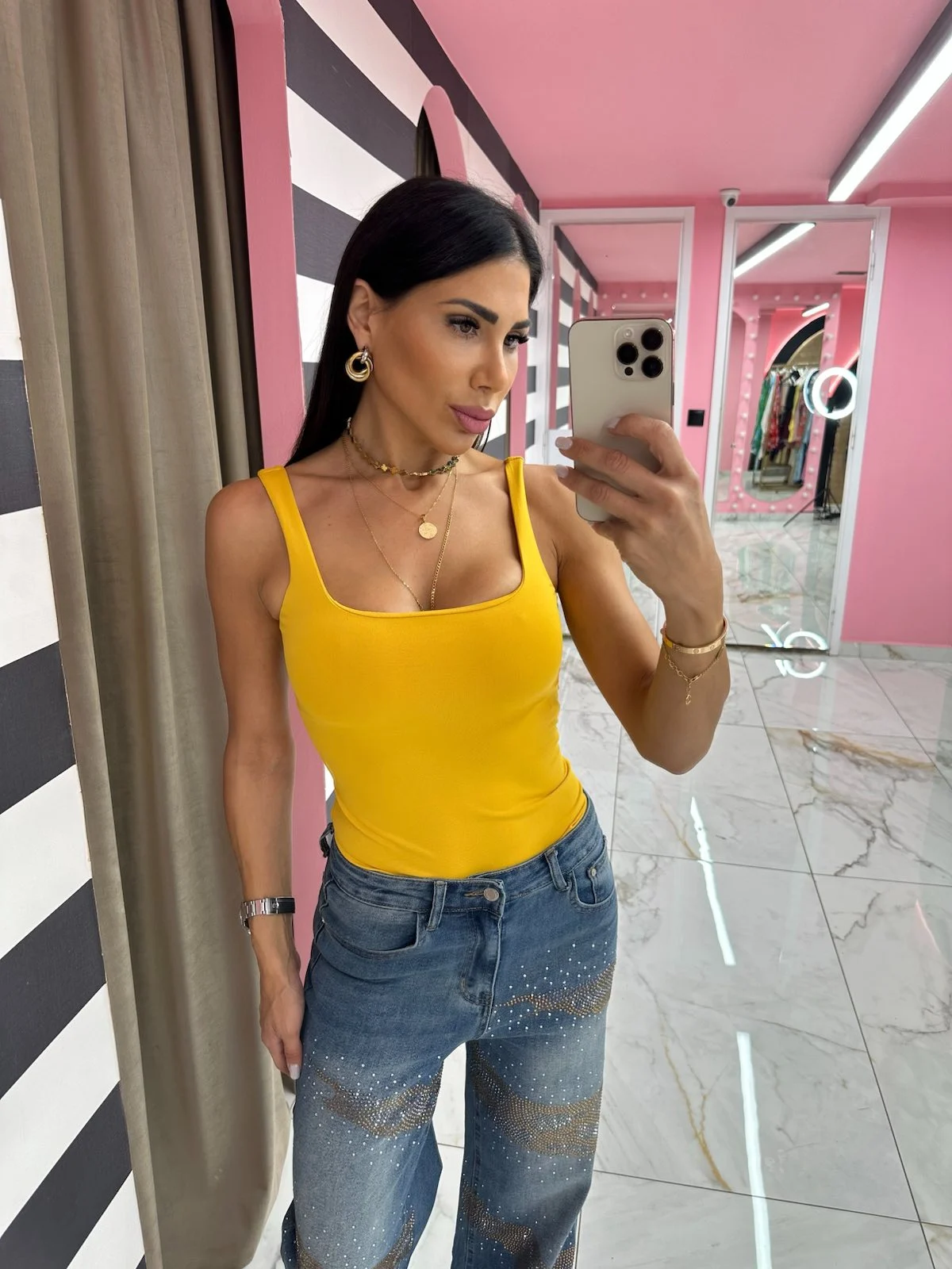 Κίτρινο top με τετράγωνη λαιμόκοψη και εσωτερικό λάστιχο στο στήθος για σταθερότητα και κράτημα. Άνετο και στυλάτο για κάθε περίσταση.
