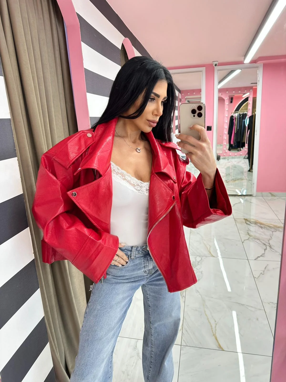 Statement jacket σε εντυπωσιακό κόκκινο χρώμα που απογειώνει κάθε outfit. Έχει χαλαρή, μοντέρνα γραμμή με φαρδιά μανίκια και ιδιαίτερο γιακά που δίνει fashion-forward χαρακτήρα. Κλείνει με φερμουάρ και φοριέται άνετα ανοιχτό ή κλειστό, πάνω από basic tops, φορέματα ή total denim looks. Ιδανικό για εμφανίσεις που θέλεις να τραβήξεις τα βλέμματα.