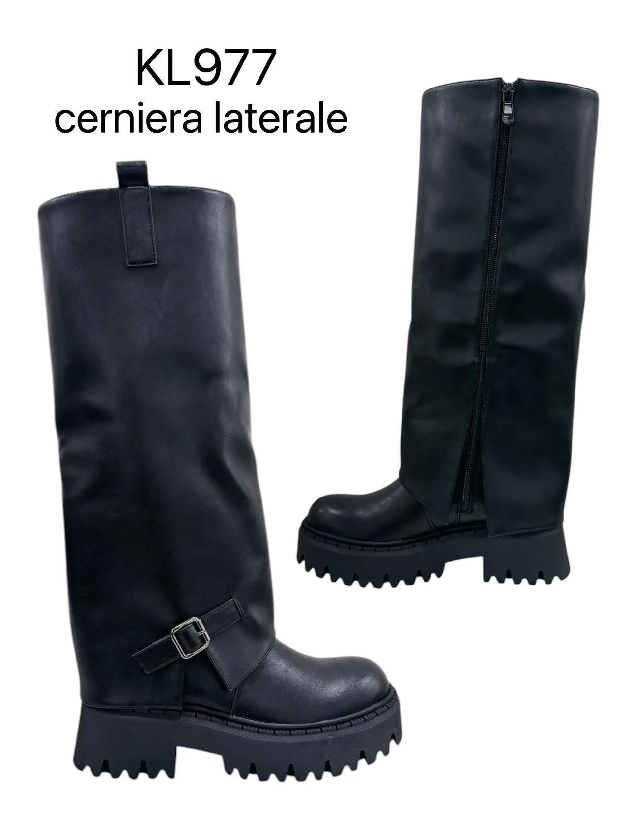 Μαύρες μπότες με στρατιωτικό ύφος, πλαϊνό φερμουάρ και chunky σόλα για απόλυτη σταθερότητα και άνεση. Η μεταλλική αγκράφα στο πλάι προσθέτει διακριτική edgy λεπτομέρεια, ενώ ο minimal σχεδιασμός τις καθιστά εύκολα συνδυάσιμες με casual αλλά και πιο street style looks. Το must-have ζευγάρι για δυναμικές εμφανίσεις.